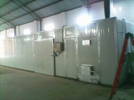 該干燥設備采用的是連續(xù)性烘干作業(yè),主要有干燥室、烘干車、料盤、供風系統(tǒng)、熱風爐、自動電控系統(tǒng)等構成。干燥室采用金屬保溫板或磚混結構,烘干盤采用金屬或其他材料制作。